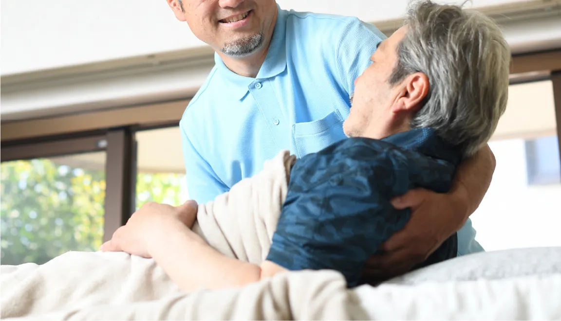 24時間・365日の切れ目ない支援が行える体制を整え、男性ホームヘルパーも多数在籍。認知症・難病・医療的ケアなどにも対応し、ご利用者様の在宅生活をサポートします。