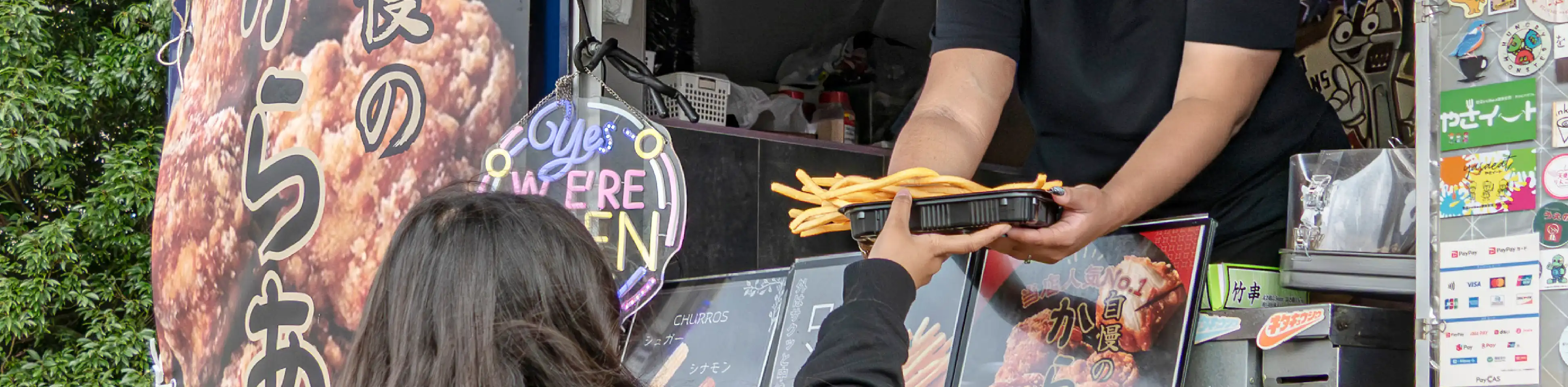 メニューは、唐揚げやチュロス、ロングポテトなど、お子様から大人まで楽しめるバラエティ豊かなラインナップ。季節に合わせて、かき氷などの限定メニューも登場します。また、ご要望に応じてお弁当販売にも対応いたします。